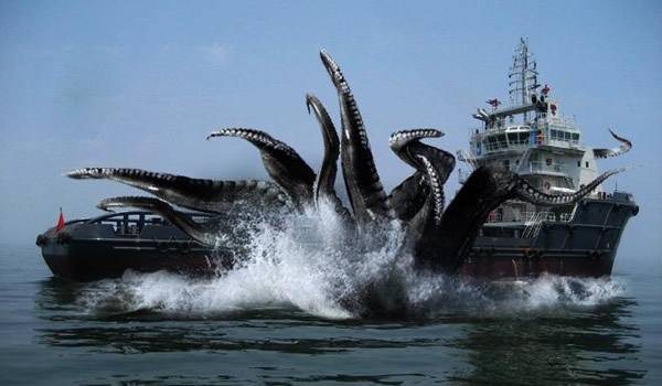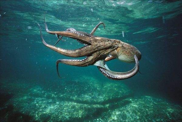 巨型章鱼属于巨乌贼属(Architeuthis), 通常栖息于深海地区,是世界第一大软件动物和无脊椎动物,体长可达十几米,仅触手就有10米甚至更长。