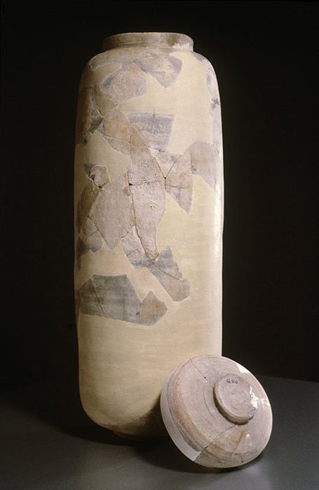 从1948到1956年,研究人员在库姆兰(Qumran)的11座洞穴里,挖掘出80份完整无缺的古卷以及超过20,000份残篇部份,除了《以斯帖记》以外的每一本旧约全书 (Old Testament)都在这些完整和残篇古卷中手抄呈现。古时候的犹太人使用这种瓦罐来储存羊皮纸,铜皮,和莎草纸的手抄本。﹝维基共用资源﹞