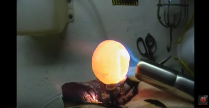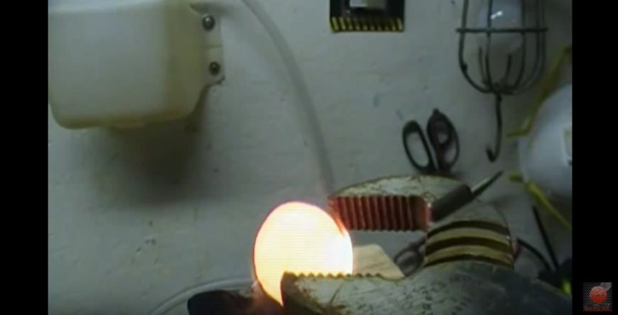 先把这颗镍球烧到发红,像一颗小太阳一样
