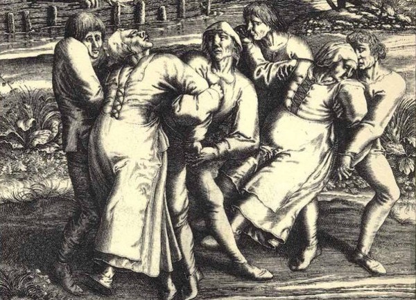 1374年7月24日,数十名德国村民聚集莱茵河周围,像发了疯一样,歇斯底里在大街上跳数小时、数天、数个月!根据他们说,自己受到某种神秘音乐支配,而开始疯狂舞动,直到参与者因为精疲力尽崩溃倒地或心脏病发,这场莫名的舞会才会结束。
