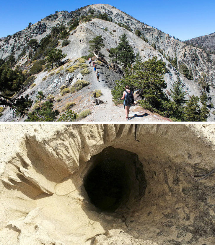 8. 美国博蒂山 (Mount Baldy) 的沙丘。这座山是一个被称为“活着并会自己移动”的沙丘,因为它每年会移动几英尺。它还有一个很神秘的洞,有一次一个6岁男童掉了下去并被救回来后,这个洞才首次被发现,但科学家仍未知道形成原因。