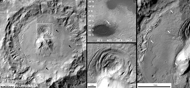 “因这些地形拥有奇特的外观所以才吸引了我们的注意”,Levy说道。“他们是同心断裂的,所以看起来像一个靶心,这在地球的材料中是一个常见的识别模式。”
