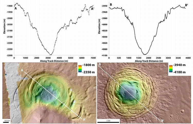 他们估计大约有2.4立方公里的材料被移除才形成了Hellas Planitia凹陷,Galaxias凹陷大概有0.2立方公里的材料被移除而这些材料主要是水和冰。