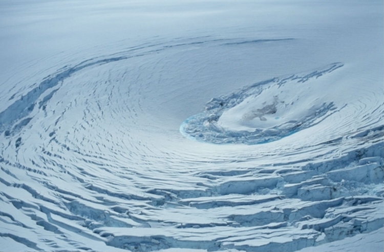该团队发现,一个古火山的爆发可能造成温度上升而促使冰盖熔化或推动大冰盖然后形成漏斗形状,就像当时冰盖和火山混合时的地球所发生的情况一样。