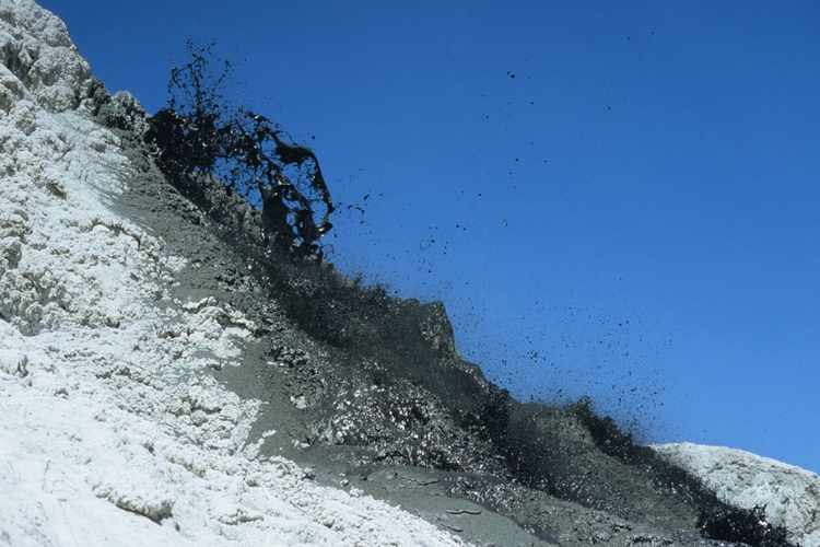 它喷出的岩浆温度从未超过510°C(950°F),远低于玄武岩岩浆的最低温度(1,000°C / 1,832°F),玄武岩岩浆是地球上最常见的岩浆类型之一。岩浆温度是这么低的事实,使得它几乎总是黑色,因为它无法辐射出足够的热,所以无法看起来是红色的。