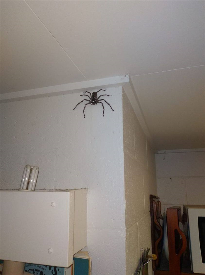 我知道你快被吓死了,但我要分享一件更恐怖的事情。其实这种大蜘蛛在澳洲还蛮常见的。上个礼拜才有人在家里墙壁上发现,大小真的大到让人以为是万圣节装饰忘记收……