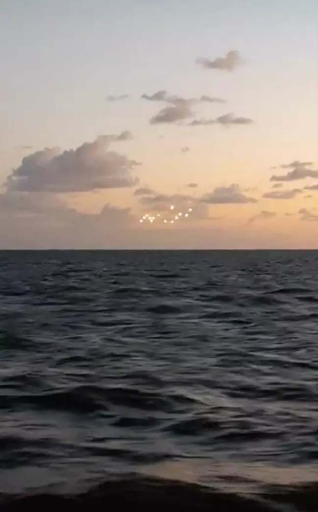 这段影片是网友威廉·盖伊 (William Guy) 搭邮轮的时候拍到的,当时邮轮正开过帕米利科海湾,他抬头发现天空中有14盏奇怪的灯光。威廉一开始先录了海平面,上面什么都没有,可是镜头一抬照到更高的天空,马上看到奇怪的灯光。