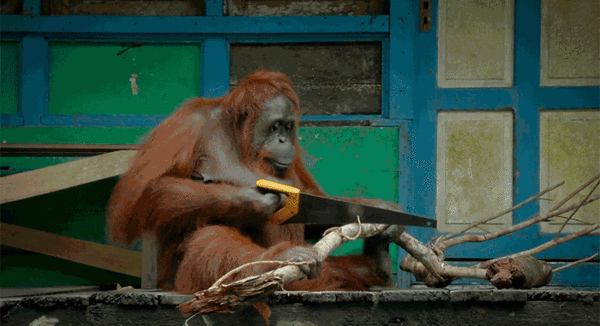事实上,专家很早就发现人科生物使用工具的情况,例如大猩猩会用石头砸开核桃、黑猩猩以树枝钓白蚁、红毛猩猩吹树叶作为哨子吓退入侵者。那是否代表决战猩球的时代即将来临了呢?嗯,我怎么知道,我又不是红毛猩猩。