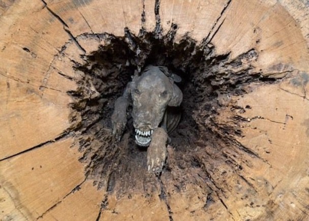 在美国乔治亚州一个森林为主题的博物馆内,最受欢迎的展品并不是珍稀的林木或树叶,而是一具藏在橡树树干内、面目狰狞的猎犬木乃伊。从猎犬绝望失焦的眼神,可想象到它20多年前、被困树身惨遭活活饿死的景象。