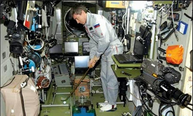 太空高尔夫球:地面上最远击打的高尔夫球远不及国际空间站,2006年11月,俄罗斯宇航员米哈伊尔-黎秋林(Mikhail Tyurin)在空间站完成了一次太空高尔夫球击打,这也是加拿大一家高尔夫球公司的商业活动的一部分。