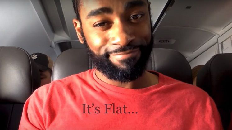 这位“现实主义者”,如同他所描述自己的词,他搭了北卡罗莱纳州到西雅图的班机,要观察机师是否会使机首倾斜,以“补偿地球的曲率(curvature)”。