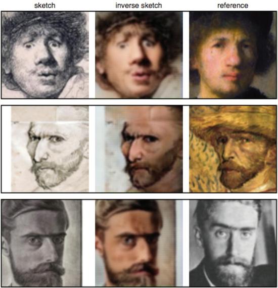 研究人员称它除了在美术领域的应用外,还可以被应用到警方的取证环节。因为它可以将警方基于目击者画的犯罪嫌疑人的草图转换为更清晰的人脸图像。
