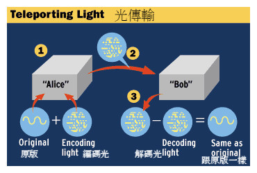 量子隐形传输当然不是说可以让一个在纽约的人瞬间出现在伦敦,但是却可以透过量子奇特的力学现象“缠结”(entanglement)让讯息立即传输出去。