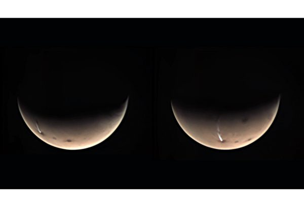 2018年9月,科学家第一次看到火星上一个火山的上空发现一条巨大白色的云带。自那以后,这个白色云带每年同样的时间都会出现在相同的位置。