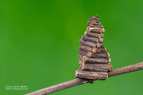蓑蛾的幼虫会收集树木和叶子或其他物体,制作出睡袋并好挂在树上,而且这些睡袋的大小可能会达到5英寸 (~12.7厘米)。