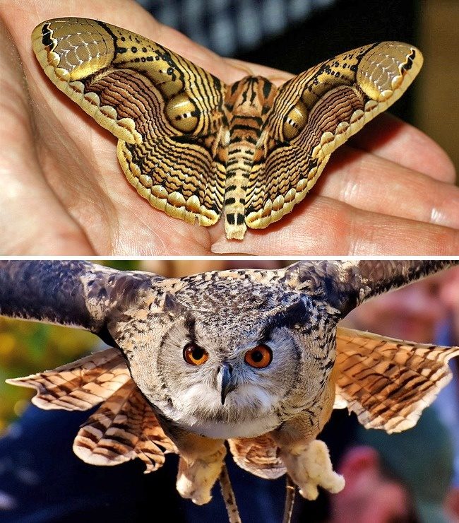 猫头鹰环蝶(Brahmaea hearseyi)又名猫头鹰蝶 。这种猫头鹰蝴蝶也很大,翅膀打开可以长达7英寸 (~17.7厘米) ,他们多分布在亚马逊丛林,中国,菲律宾,缅甸和俄罗斯。他们喜欢吃水果,特别是过熟的香蕉。有些人们还喜欢把他们带回家当宠物!