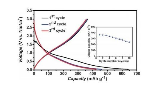 在锂离子电池中,锂离子可以在石墨中可逆的嵌入和脱出使石墨具有较低的工作电压、较高的比容量,成为了一种性能优异的负极材料。而钠离子半径比较大,与石墨层间不匹配,且钠离子与石墨层间的相互作用比较弱,因此,石墨并不适合作为钠离子电池的负极材料。因此,研究者们对非石墨质碳材料(即硬碳、软碳和无定形碳)等进行了广泛了的研究。尽管嵌入类材料一般循环寿命较好,但其容量较低。