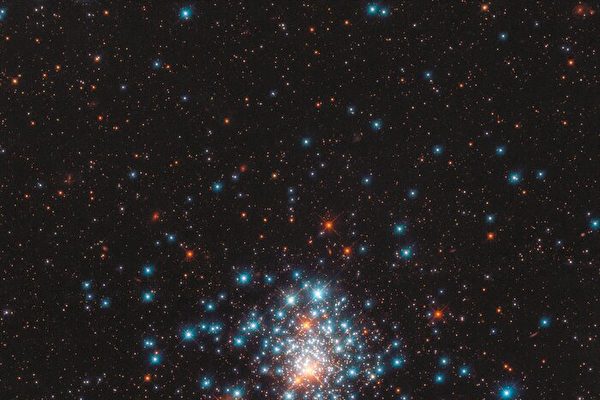此图片展现出各种恒星漂亮的色彩,照片结合了两种不同的光线:在近紫外光下最闪亮是发蓝色的星,而红色的星凸显在红和近红外光下。哈勃这样的太空望远镜可以在紫外线下进行观测,因为它们位于地球大气层之上,而地球大气层吸收了这一波长的大部分紫外光线,使得地面设施无法利用紫外线进行观测。
