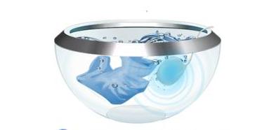 看这体型,它的内部是塞不进任何衣物的。它是靠自身发出的超声波,通过水分子传到衣物上,将灰尘、有色颗粒等污物从衣物上震荡下来,从而达到清洗效果。