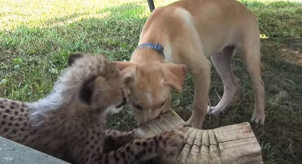 狗被用来作为囚禁猎豹的伙伴超过30年。圣地亚哥动物园(San Diego Zoo)首创这个想法,而他动物园跟着实施。里奇蒙都会动物园解释为什么他们配对这两只动物:
