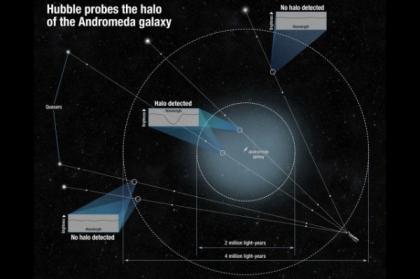 哈勃太空望远镜观察到与我们最近的仙女座星系有一个100万光年长的云气辉光环绕着它,而且快要到达银河系一半的距离。这云气辉光比之前想的要再大六倍,而且质量要再大1000倍。