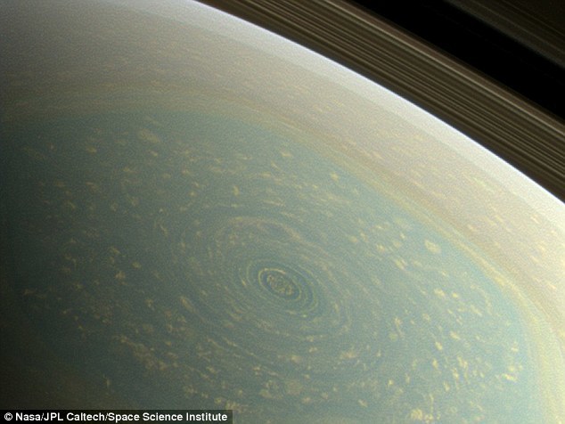 在近30年时间里,科学家一直对土星北极的这个巨大涡旋困惑不已。根据卡西尼号的探测结果,研究者发现涡旋延伸到了土星大气层的深处。
