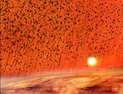 虽然这颗热木行星表面组分中存在钛氧化物,科学家通过计算机模型演示结果发现,其大气中弥散着二氧化钛等物质,随着表面温度的升高,HD 209458b热木星上的"雪"可再次变成气体,并回到上层大气中。该行星上出现的壮观"降雪"情景似乎无法想象,虽然二氧化钛是白色,具有一定的光泽,但是其大气中还存在硅氧化物,因此整个情景酷似充满了黑烟。