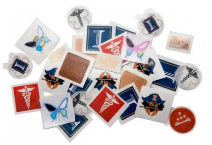 当软化的硅压入到晶体中,生物戳就大致完成了,剩余的空间可以用来添加其他的电子元件,扩展设备功能。接着,生物戳会将他们放入到一个临时的衬底上,衬底一般是一个塑料的板子。接着会通过标准的光蚀刻过程,将他们与铜导体相连,来保证连接的可伸缩性(我也不太懂这种工艺,求科普)。总之制作过程很复杂啦。最后你能买到的就是一种类似于小时候我们买到的贴画一样的生物戳,想用的时候,就撕下来一张,贴在身上。