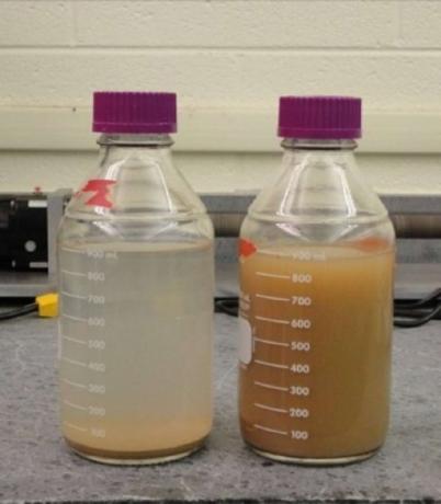 我们将碾碎的辣木种子加入水中,这样能够使得蛋白质充分释放。接着我们会加入少许的沙,蛋白质能够迅速吸附到沙上,沉入水底。剩余的蛋白质和有机物主要是生化需氧量(biochemical oxygen demand,BOD)直接可以被冲洗掉。这种功能性沙激活后,据可靠数据显示,他们能够净水和杀死一些病原体。当操作完成,把这些沙子过滤出来还能继续使用。这就是滨州大学Stephanie Velego的研究成果。