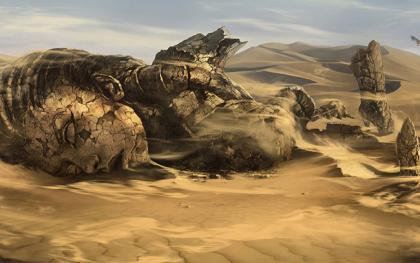 战争结束后,米哈伊尔。哥科格里维奇念念不忘沙漠中那两座奇怪的雕像,于是又带队踏上征途,去寻找5年前被他发现的雕像。当他们到达目的地后,眼前的情景使米哈伊。哥科格里维奇惊呆了。他所看到的两座雕像已经改变了原来的姿势:女雕像两膝微屈,一只手伸向曾被米哈伊。哥科格里维奇敲掉了几块碎石的脚。男雕像则向前跨了一步,朝女雕像侧过半边身子,右手拿着武器伸向前方,仿佛在庇护着她,这与5年前的照片大不一样。
